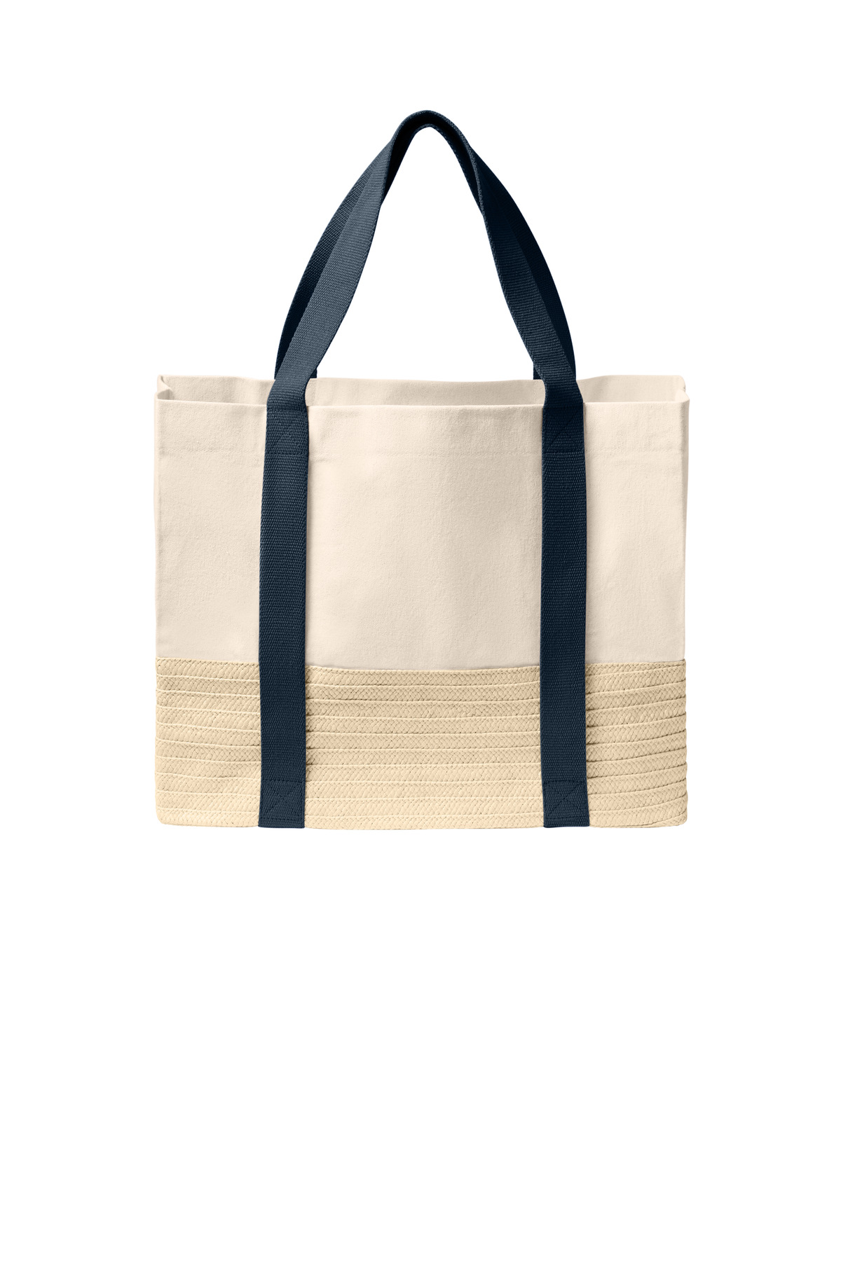 Port Authority Straw Market Tote BG45012-ounce, 100% cotton canvas,Natural canvas top panel,Natural paper ribbon straw lower body,Interior hanging pocket,Colored web handles,Dimensions: 14"h x 18.1"w x 6.7"d,Capacity: 2,257.9 cu. in./37 L,Weight: 1.26 lbs./0.59 kg,Note: Bags not intended for use by children 12 and under.